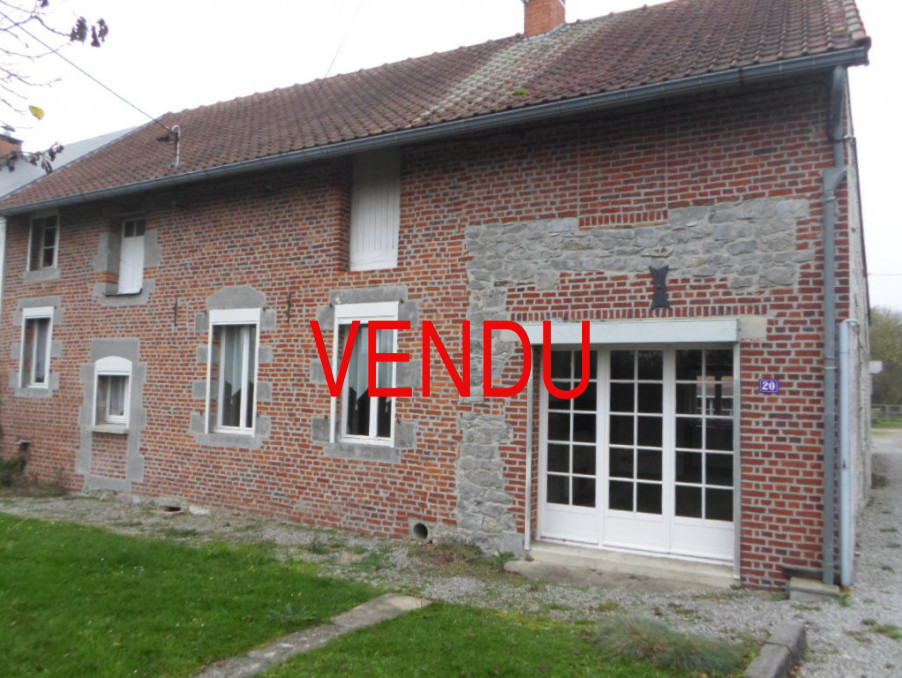 Maison avesnoise en pierres et briques semi-individuelle comprenant: cuisine, salon avec cheminée, salle à manger, bureau, 2chambres, cellier, cave, grenier aménageable, garage, appentis, dépendances et terrain. PROCHE FORET, BEAU POTENTIEL