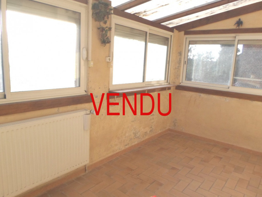 Maison avesnoise en pierres et briques comprenant au rez de chaussée: hall, salle à manger avec cheminée, cuisine aménagée, véranda, salle d'eau avec wc, salon,1chambre et 1 bureau, à l'étage: palier, 2chambres avec placards et un grenier aménageable de 50m2, sous sol avec 3 caves, chaufferie, atelier, grand garage de 100m2, dépendance, serre et terrain